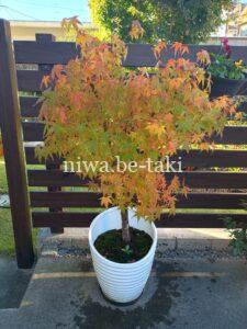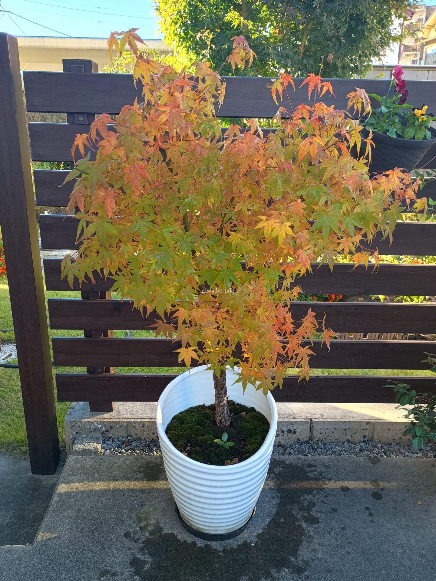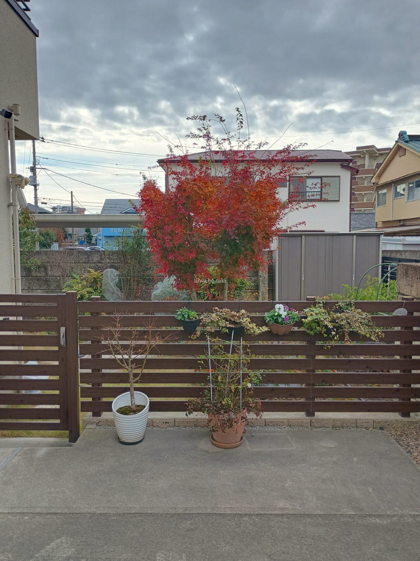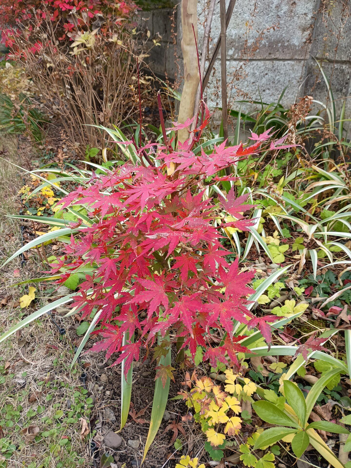 10/28 一足先に紅葉したコンテナのイロハモミジ(こぼれ種から生長したもの)
