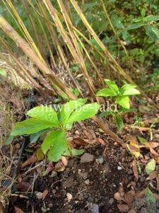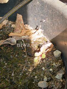 千両の株元にこぼれ種からの芽を発見!